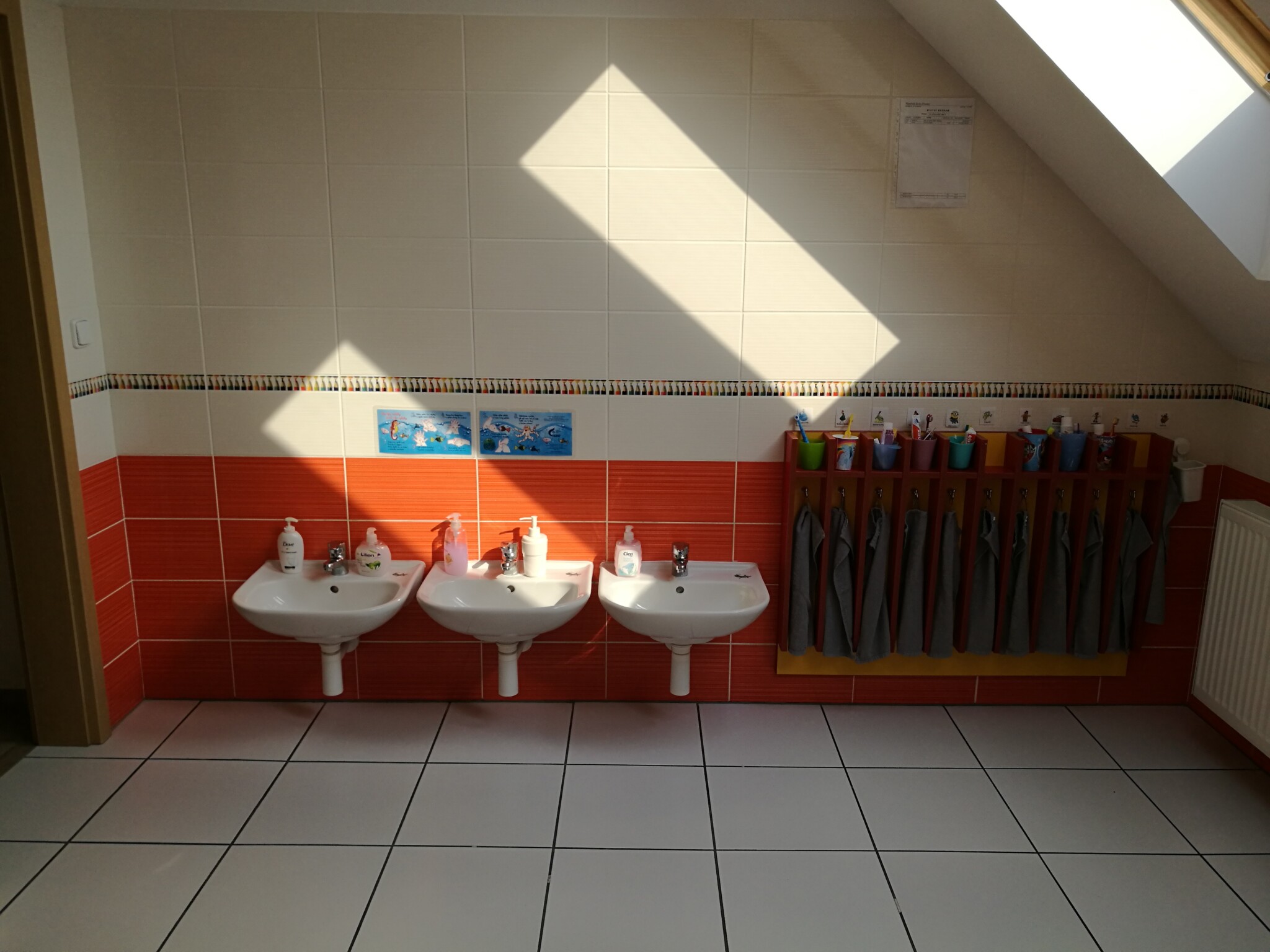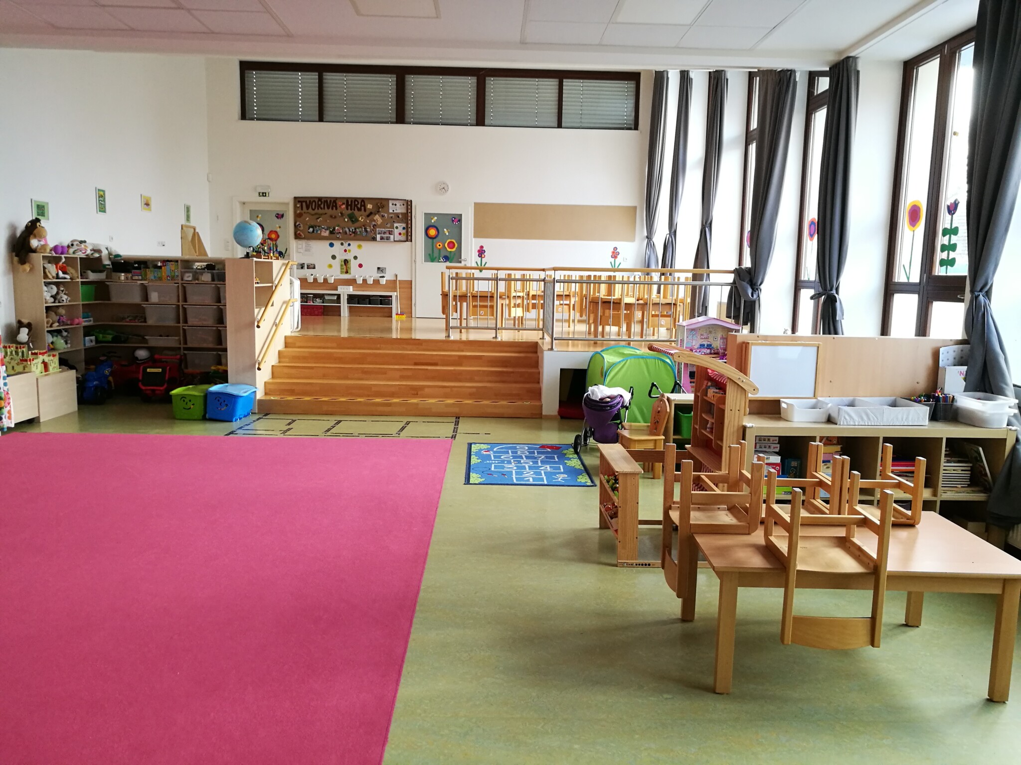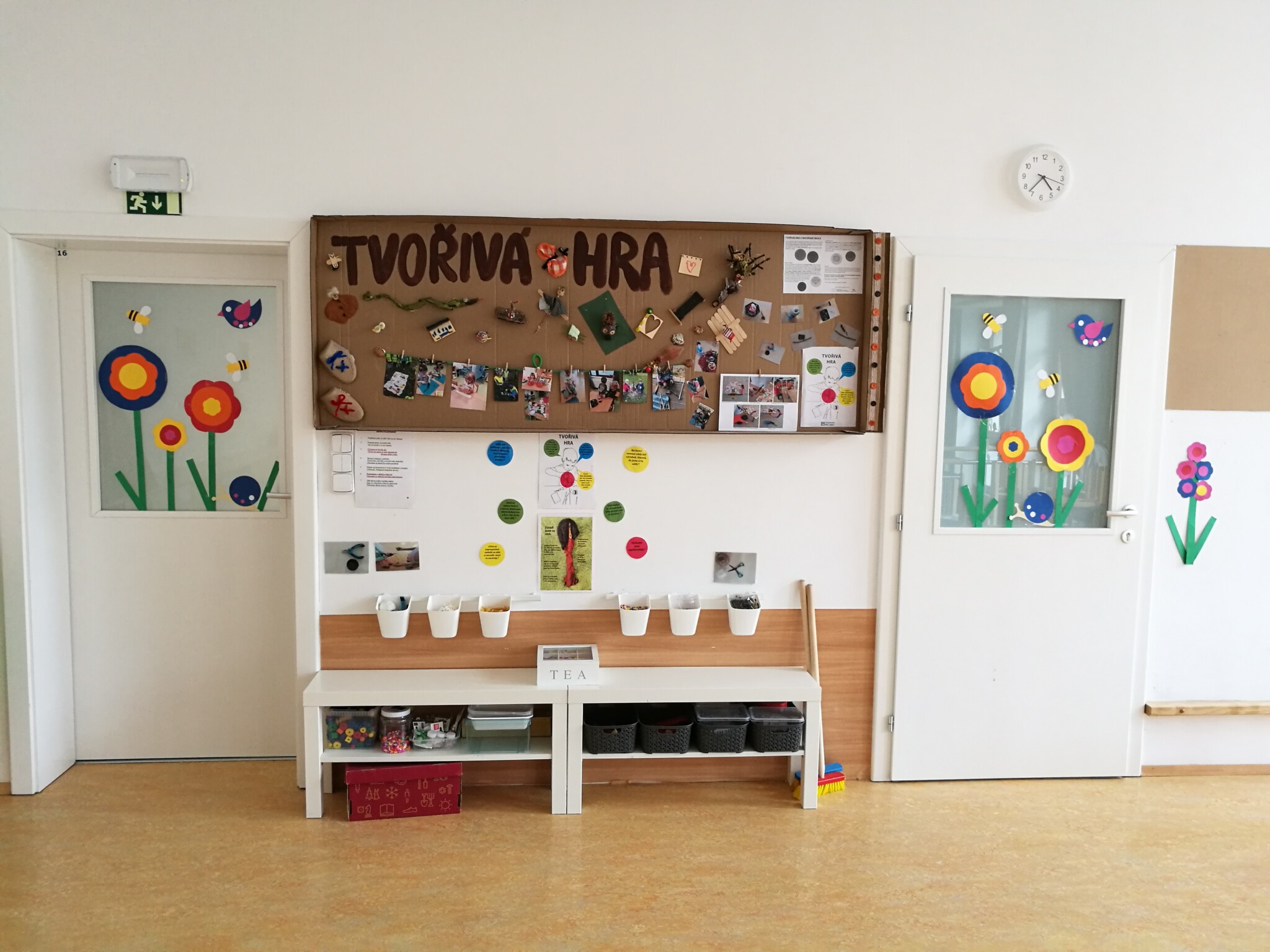 V budově mateřské školy jsou třídy rozmístěny ve dvou pavilonech, které jsou propojené středovou chodbou. Každá třída má k dispozici vlastní místnost, která slouží zároveň jako třída, herna i tělocvična, a dále má vlastní sociální zařízení. Třídy mají také vlastní šatnu a výdejnu jídla – malou kuchyňku. Součástí mateřské školy je malá přilehlá zahrada s houpačkami a klouzačkou. Tato zahrada je využívaná především v teplejším období v odpoledních hodinách, kdy se ve školce nachází méně dětí.