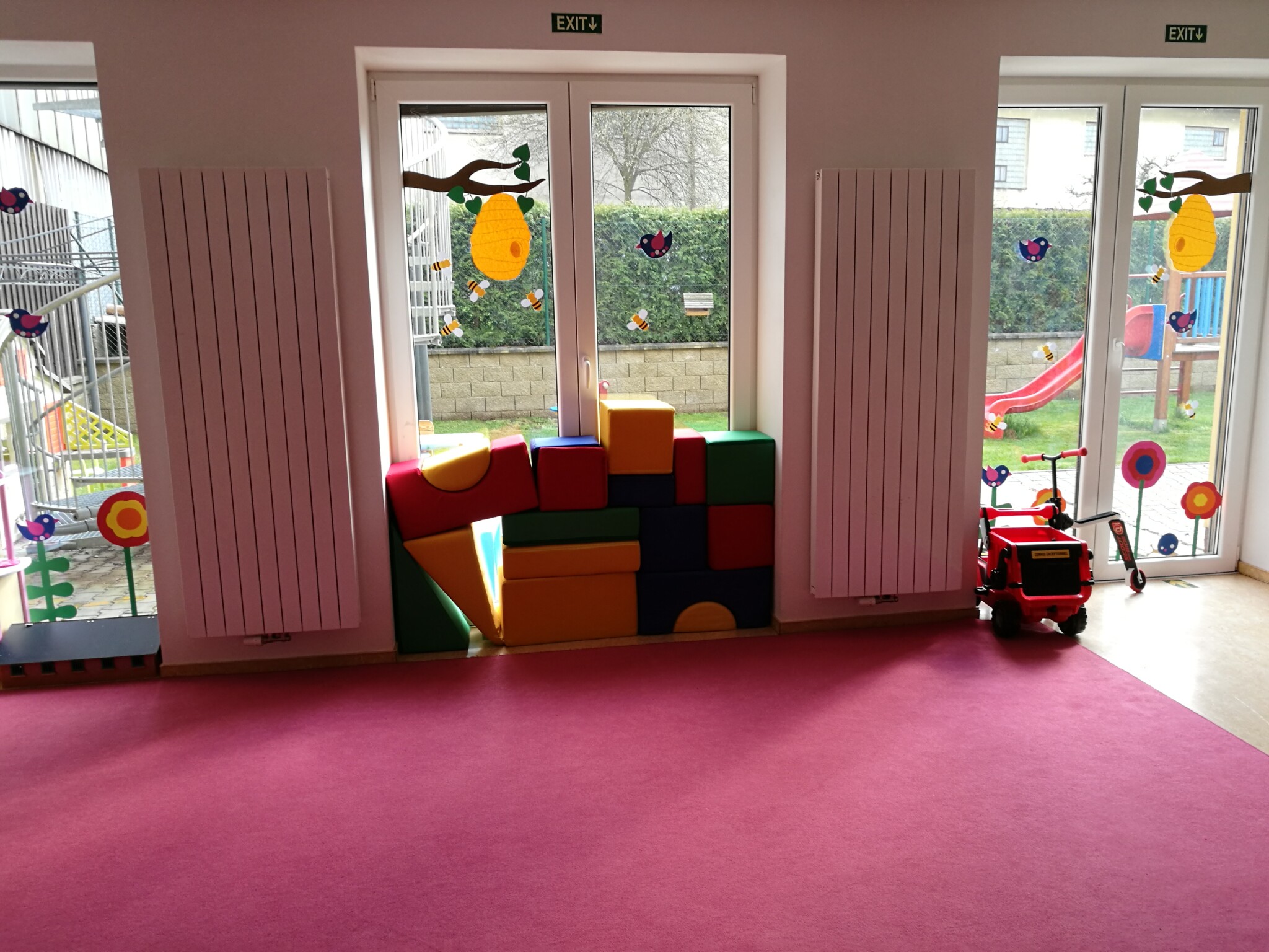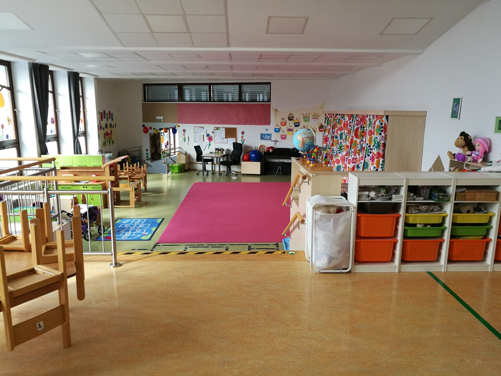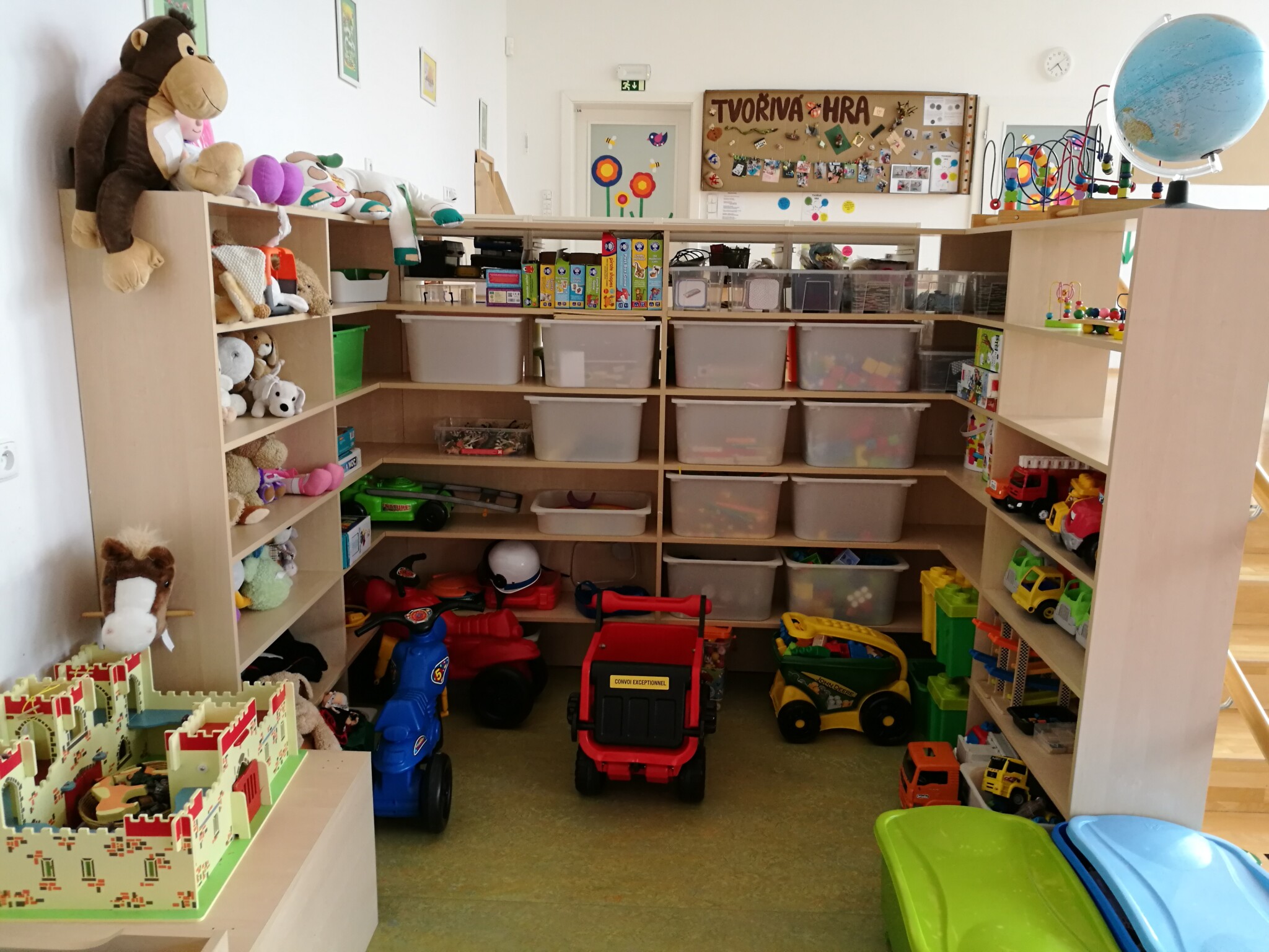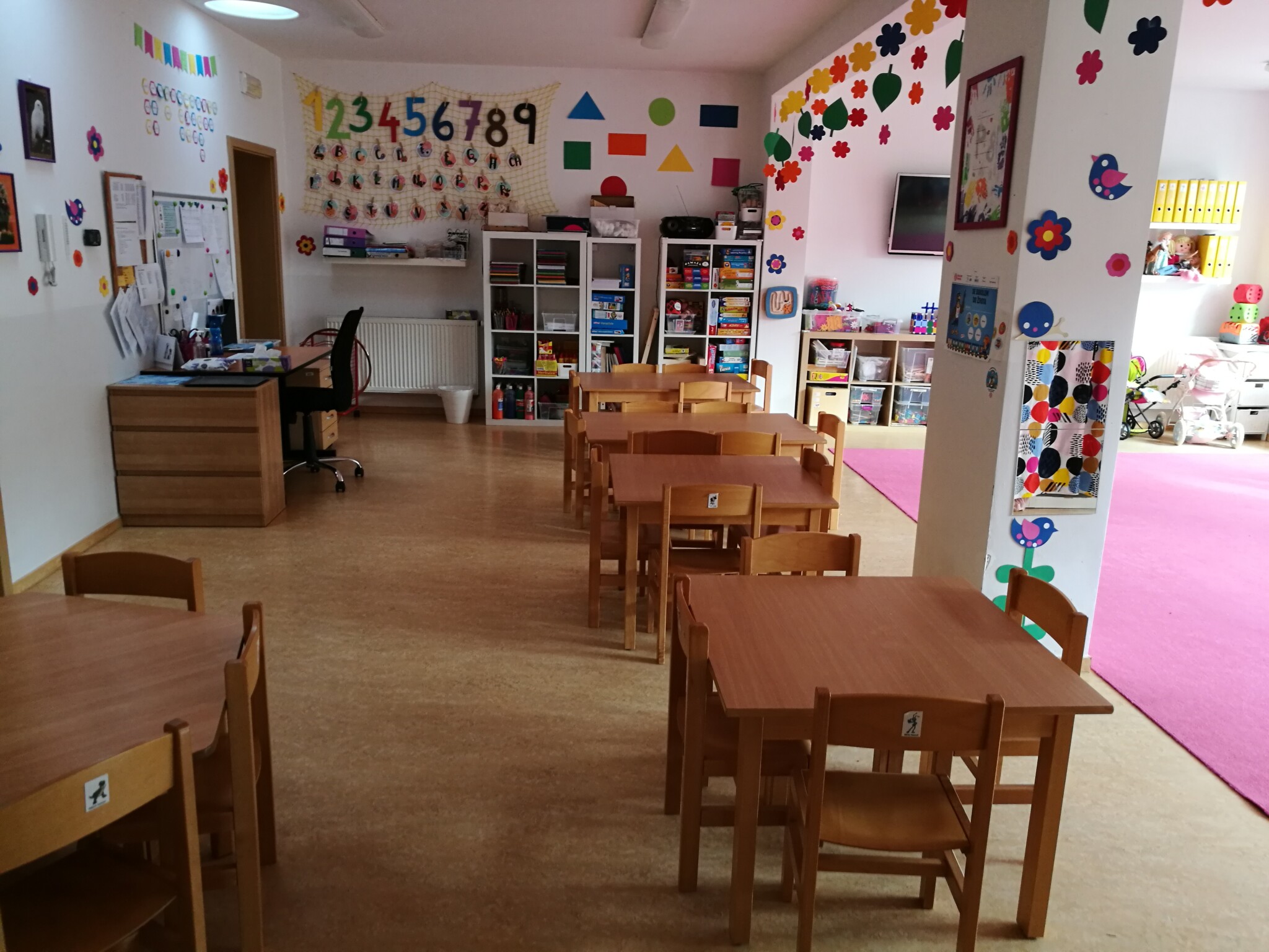 V budově mateřské školy jsou třídy rozmístěny ve dvou pavilonech, které jsou propojené středovou chodbou. Každá třída má k dispozici vlastní místnost, která slouží zároveň jako třída, herna i tělocvična, a dále má vlastní sociální zařízení. Třídy mají také vlastní šatnu a výdejnu jídla – malou kuchyňku. Součástí mateřské školy je malá přilehlá zahrada s houpačkami a klouzačkou. Tato zahrada je využívaná především v teplejším období v odpoledních hodinách, kdy se ve školce nachází méně dětí.